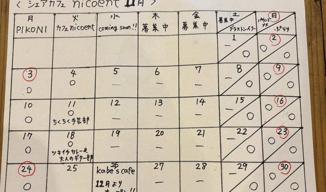 シェアカフェnicoent10月